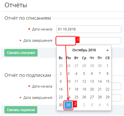 - В группе элементов Отчёт по списаниям с помощью Календаря установить период формирования отчета в полях Дата начала и Дата завершения.