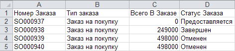 Полученный отчет в формате MS Excel содержит следующие столбцы:Номер Заказа - номер Заказа. Формат номеров разных типов заказов может быть настроен в системных настройках (см. Системные настройки);