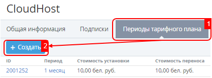 - Нажать кнопку Создать. Новый период будет создан и отобразится на вкладке Периоды тарифного плана.