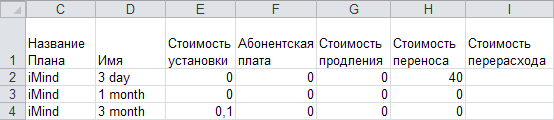 - Открыть экспортированный ранее файл со списком тарифных планов.