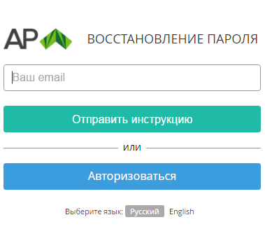 - На форме Восстановление пароля ввести адрес электронный почты, который используется в качестве логина для входа в Панель управления Оператора.