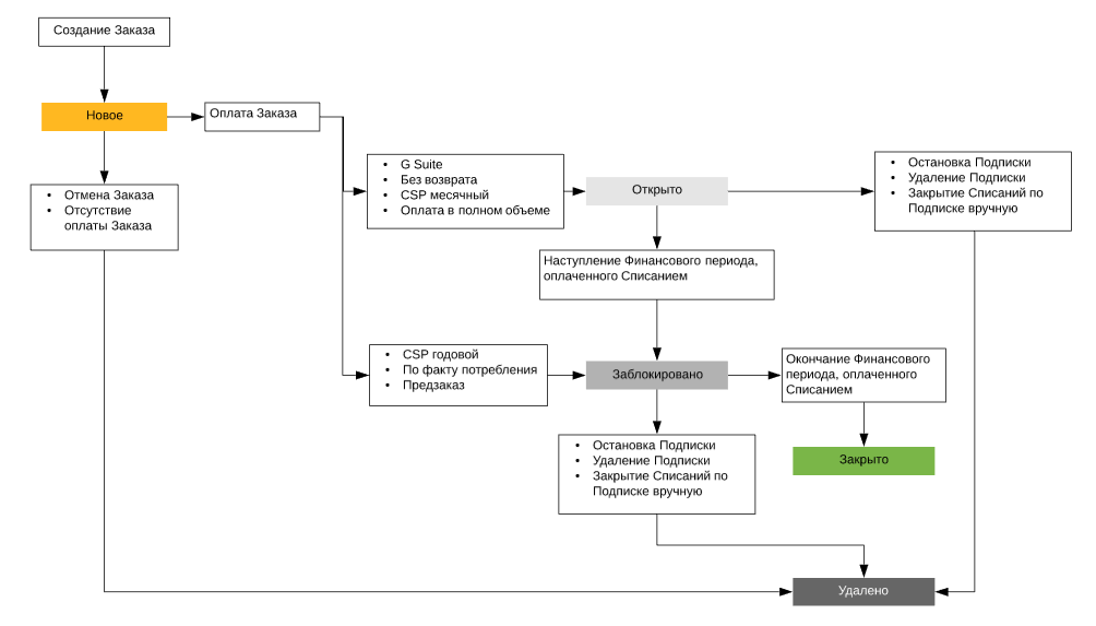 | Оплата Заказа на продление Подписки (см. Продление Подписки) | Плата за продление | Статус | изменяется во всех случаях |