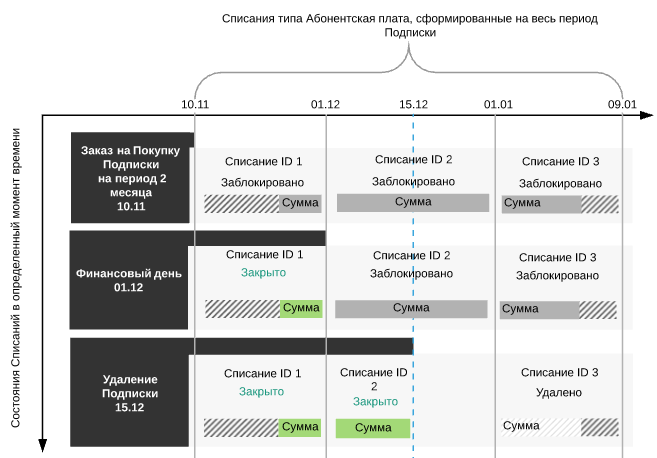 - Списание за текущий Финансовый период использования Подписки получает статус Удалено.
