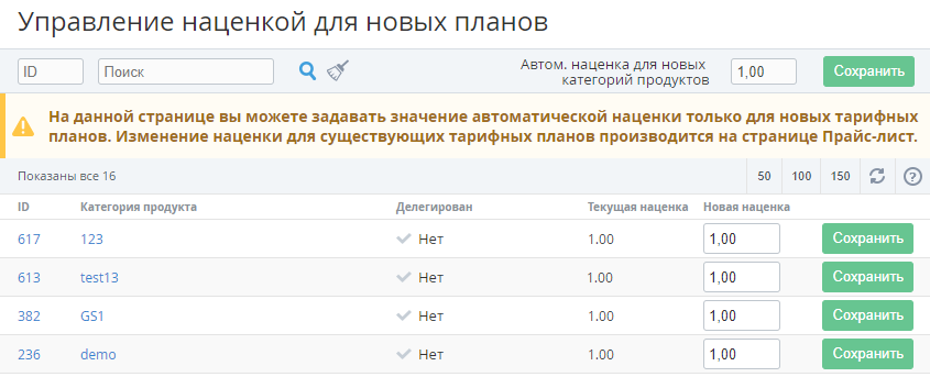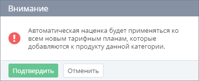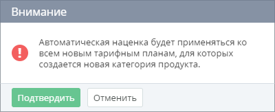 Коэффициент наценки по умолчанию автоматически применяется к новым Тарифным планам, которые были делегированы вышестоящим Реселлером (Оператором).