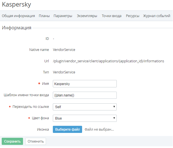 • Шаблон имени точки входа - содержит шаблон, который применяется для отображения имени ярлыка Услуги в Панели управления Клиента. По умолчанию, поле содержит Плейсхолдер plan.name, и названия всех ярлыков, кроме ярлыков Домены и Сертификаты, совпадают с названием соответствующего Тарифного плана (см. также Значение имён Подписок и Точек входа по умолчанию и Создание Продукта).