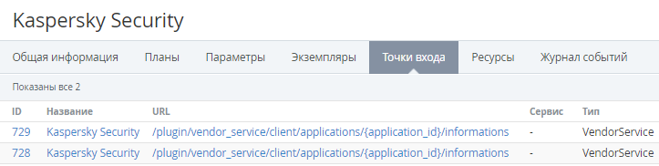- Перейти на вкладку Точки входа. Отобразится Список точек входа Услуги.