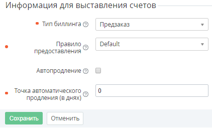 - Точка автоматического продления - количество дней до истечения срока Подписки, когда Клиент получит счет на продление Подписки.