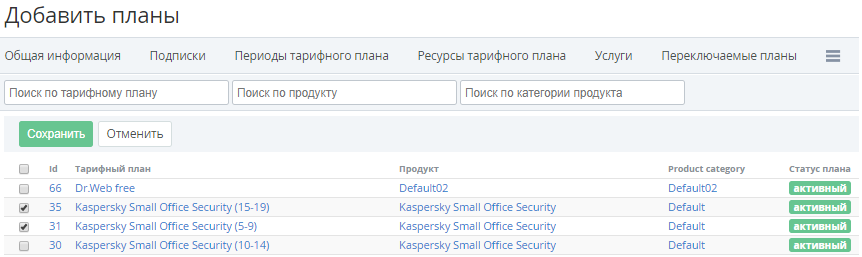 - Нажать кнопку Сохранить. Выбранные Тарифные планы отобразятся на вкладке Переключаемые планы.