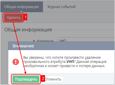 Удаление Дополнительного параметра является необратимой операцией и может привести к потере данных, которые были введены с помощью данного дополнительного параметра.