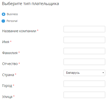 • Account Form - шаблон страницы создания нового Клиента в Панели управления Клиента.