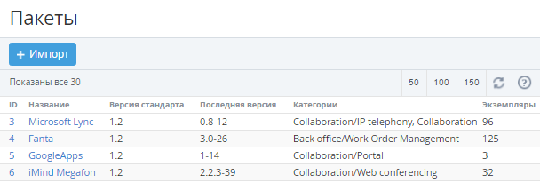 • Экземпляры  - количество экземпляров, которые были созданы на услугах, созданных на базе выбранного APS пакета.