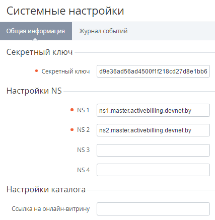 - На Панели навигации перейти в раздел Системные настройки (см. Навигация по Панели управления Оператора). Откроется вкладка Общая информация страницы Системные настройки, содержащая следующие элементы: