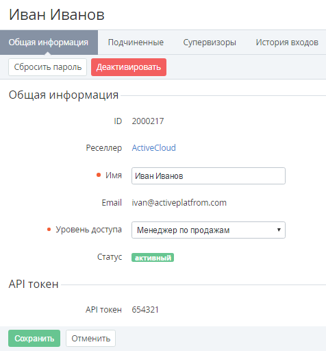 - Щелкнуть на ID или Имени сотрудника. На экране отобразится страница сотрудника.