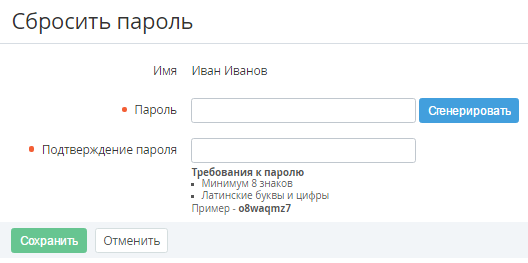Сброс пароля Сотрудника