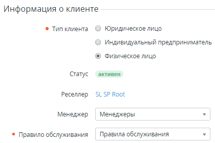 - Установить переключатель Тип клиента в положение, которое соответствует Типу клиента, например, юридическое или физическое лицо (см. Создание типа Клиента).