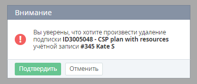 - В открывшемся модальном окне нажать кнопку Подтвердить. Подписка будет удалена.