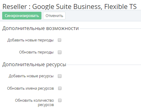 • Выбрать флажок Обновить имена ресурсов для обновления имен Ресурсов Тарифного плана;