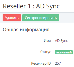 3. Щелкнуть на Названии необходимого Реселлера. В рабочей области появится страница с подробной информацией о выбранном Реселлере (см. Просмотр информации о Реселлере).
