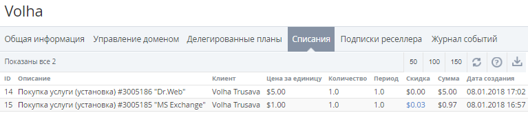 Списания Реселлера создаются только для делегированных Тарифных планов. Если Тарифный план был создан нижестоящим Реселлером, то Списания Реселлера для данного Тарифного плана создаваться не будут.