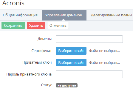 5. В поле Домен ввести доменное имя, которое будет использоваться для доступа в Панель управления Клиента клиентами Реселлера и в Панель управления Оператора сотрудниками Реселлера.