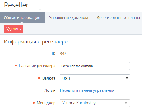 - На вкладке Общая информация нажать ссылку Перейти в панель управления. Произойдет вход в Панель управления Реселлера.