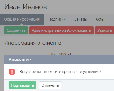 5. Нажать кнопку Подтвердить во всплывающем окне для подтверждения действия. Объект будет удален.