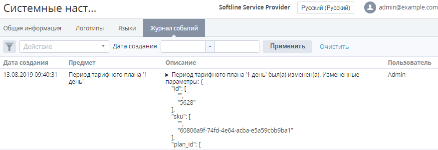 Фильтрация записей в Журнале событий доступна по следующим параметрам:
