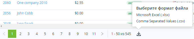 1. На Панели постраничной навигации нажать кнопку Экспорт . Отобразится меню Выберите формат файла.