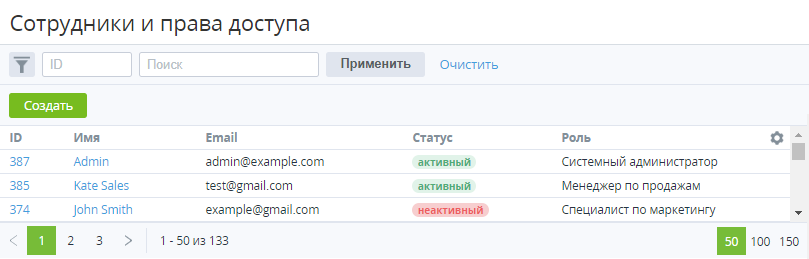 - Роль — уровень доступа в Панели управления Оператора: Менеджер по продажам, Специалист по маркетингу, Продукт-менеджер, Системный администратор.