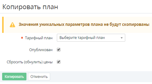 - Цена продажи будет равна цене продажи копируемого Тарифного плана.