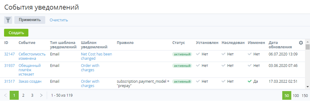 - Дата обновления — дата и время создания или обновления События уведомлений.