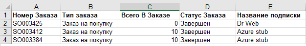 Название Подписки - название Подписки (см. Управление Подписками), связанной с Заказом;