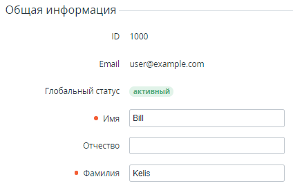 • Имя, Отчество, Фамилия — полное имя Пользователя.