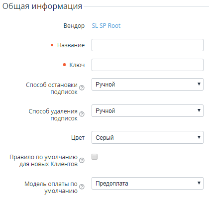 - Модель оплаты по умолчанию — Подписки с выбранной моделью оплаты будут создаваться для Клиента по умолчанию: