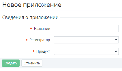 3. На Панели инструментов страницы Услуги нажать кнопку Создать. Отобразится страница Новое приложение.