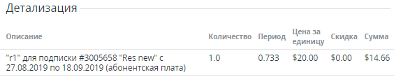 - Период — период, на который заказана Подписка или Ресурс, с точностью до трех знаков после запятой. Период отображается в месяцах, например, период длительностью один день отображается как 0.033, а период длительностью два года — как 24.