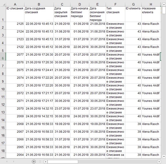 Отчёт по Списаниям Клиентов