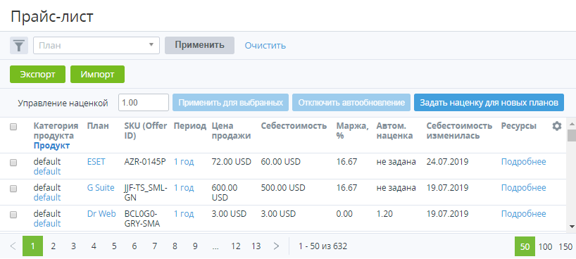 Цена продажи отображается в валюте Тарифного плана (см. Общая информация о Тарифном плане).