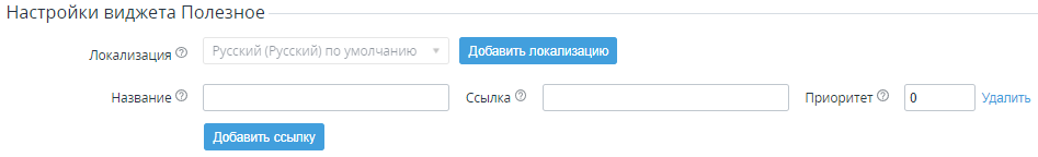 Настройки виджета Полезное — подраздел со списком ссылок, которые которые должны отображаться в виджете Полезное. Для каждого языка настройки собраны в группы элементов: