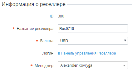 - Щелкнуть на Названии необходимого Реселлера. В рабочей области появится страница с подробной информацией о выбранном Реселлере.