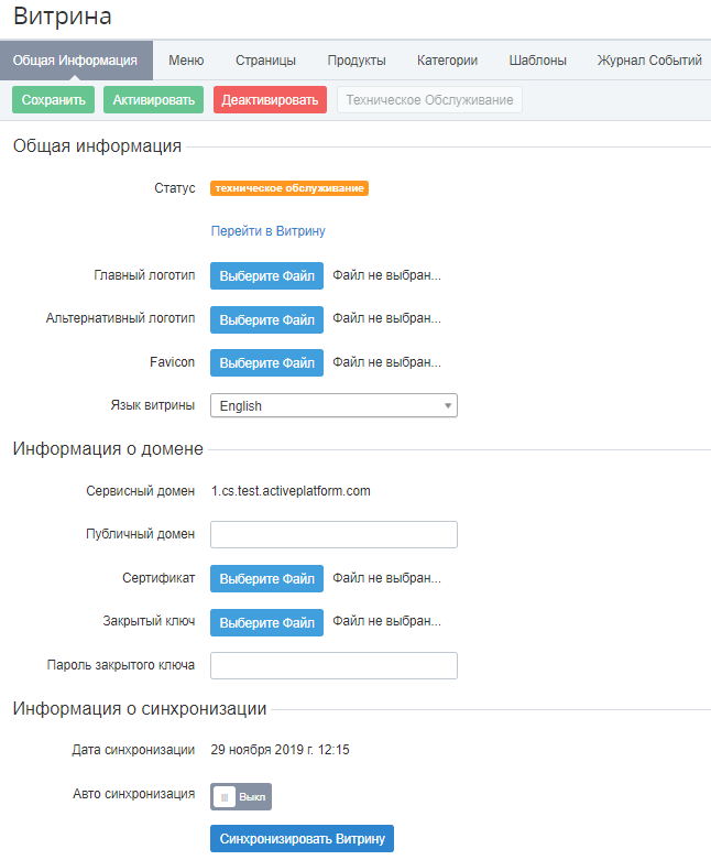 - Панель управления Customer Store — веб-интерфейс, позволяющий управлять Витриной Customer Store. Позволяет настраивать вид Витрины, управлять SEO-информацией и синхронизацией данных с ActivePlatform.