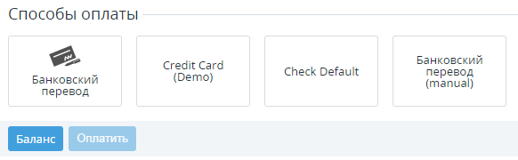 - Баланс — кнопка оплаты платежа за счет средств на балансе клиента.