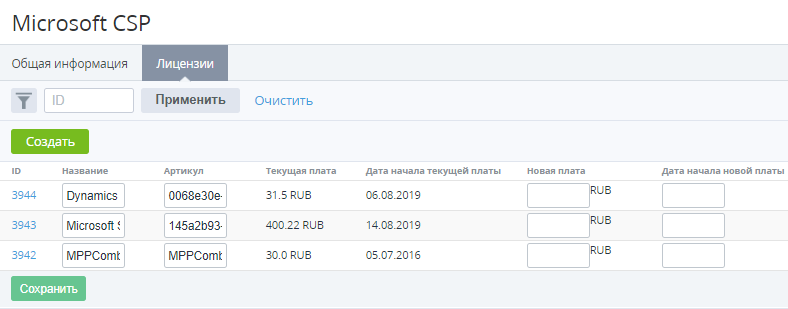- Новая плата — значение новой платы по лицензии.