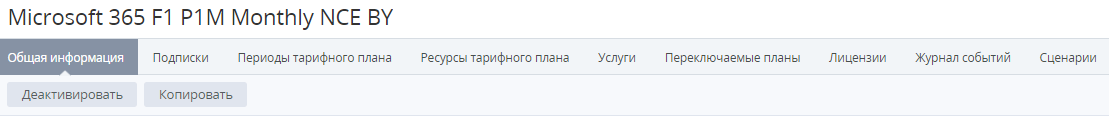 - Нажмите ID или название нужного тарифного плана. Отобразится страница с несколькими вкладками.
