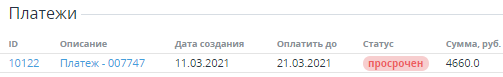 • Оплатить до — дата перехода платежа в статус Просрочен (см. Платеж за оказанные услуги).