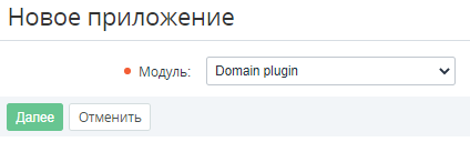 4. На странице Новое приложение в выпадающем списке Модуль выбрать пункт Domain plugin.
