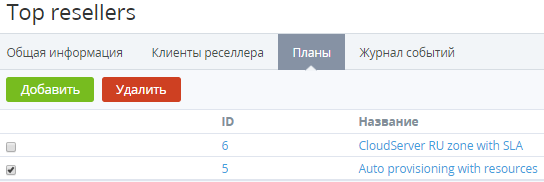 Перейдите на вкладку Планы. Отобразится список присоединенных тарифных планов (см. Просмотр списка присоединенных тарифных планов).