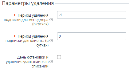 При установке значения -1 удаление подписки доступно всегда (по умолчанию для менеджера).