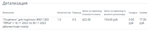 - Сумма — сумма платежа по заказу в валюте реселлера. Для подписки по модели Постоплата сумма платежа может измениться, если валюта тарифного плана отличается от валюты реселлера и реселлер позже установит новый курс. Сумма заказа на этой странице при этом останется без изменений.