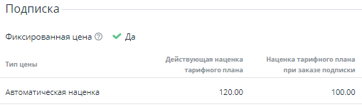 • Фиксированная цена = Нет — признак того, что для подписки действуют актуальные цены, заданные в тарифном плане (подробнее см. Общая информация о тарифном плане).
